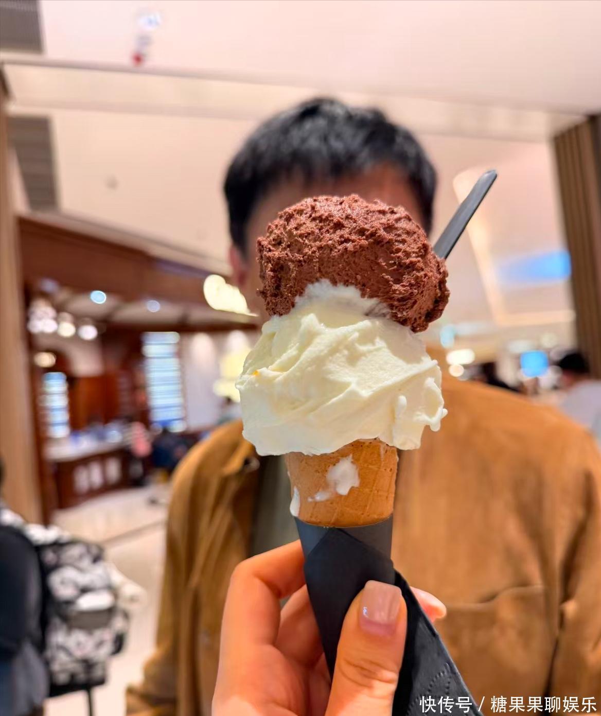 仔细观察才发现原来她吃冰淇凌的那张照片后面有一张男人的脸,在评论区里她也毫不掩饰地和网友互动晒出了自己的幸福,看来她才是真正的人生赢家。